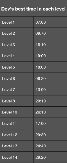 *Clicking on the settings icon in the main menu will get you to the level select screen if you want to test each level individually.